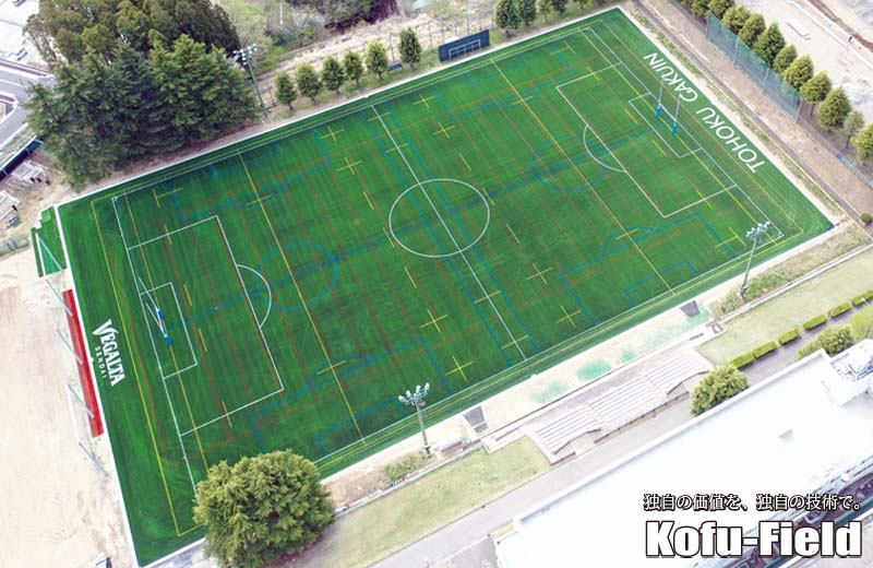 株式会社ベガルタ仙台様と学校法人東北学院様の包括連携協定に基づいて、グラウンド及び関連施設の整備が進められていますが、当社の担当する人工芝多目的グラウンドが4月に完了しました。