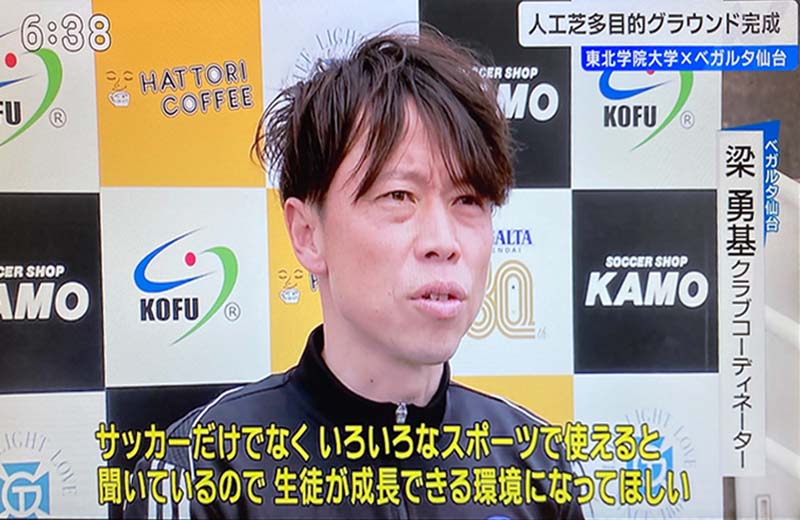 4月25日には完成した人工芝多目的グラウンドでオープニングセレモニーも行われ、その後は東北学院大学の選手たちが連日汗を流しています。今後はベガルタ仙台様の育成組織の練習グラウンドとしても使われる予定です。