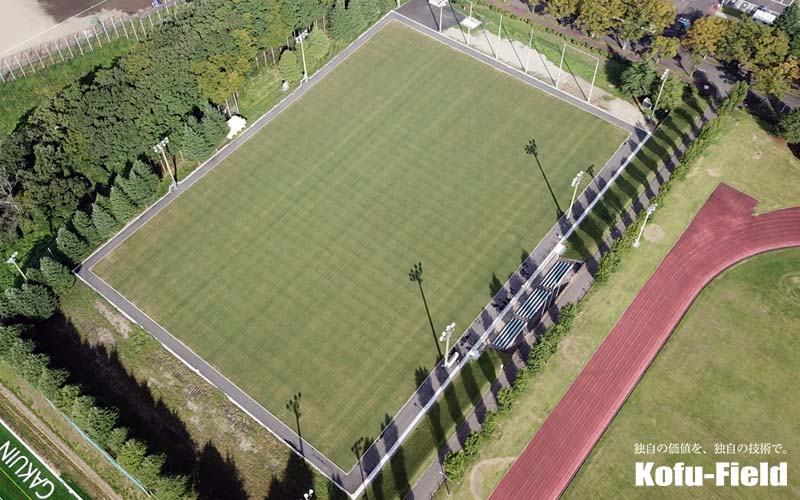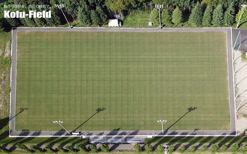 8月末での天然芝グラウンド初期養生管理も無事に終わり、株式会社オフィスショウ様への通常維持管理引継ぎも終えたので、9月12日には竣工記念としてドローン撮影を行いました。