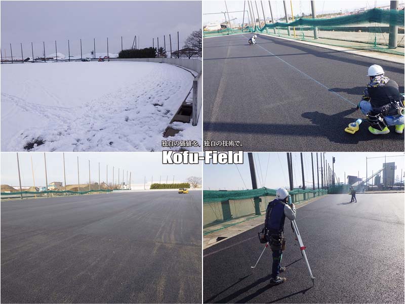 改修工事期間中に感じたことは地理的なことです。それは、川北グラウンド付近は一級河川手取川の河口付近に位置し、海・山ともに近いので気象変動が激しく、季節風も重なり時折突風が吹きさらし、日によって風向きもばらばらになる場所にあることです。従って、飛散物や資材の養生、現場の整理整頓には配慮し、常に急変する気象変化に備えながらの施工となりました。