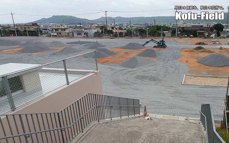 本工事は、南城市立馬天小学校の屋外環境をより安全かつ快適に整備するために実施されたものであり、校庭・運動場の路盤整正および舗装・芝地造成を中心とした環境整備を行いました。