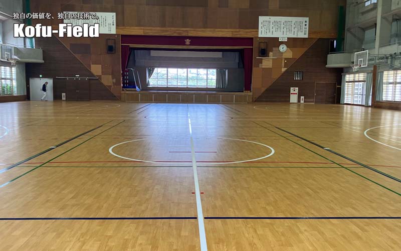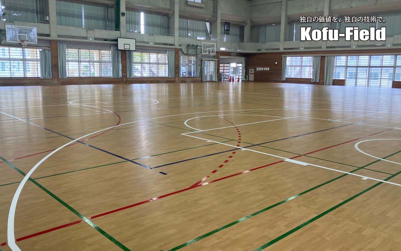 施工後は、学校関係者や生徒の皆様にも大変喜んでいただき、やりがいのある現場となりました。今後は高校のバレーボール大会などでも使用される予定であり、実績としても意義のある工事となりました。
