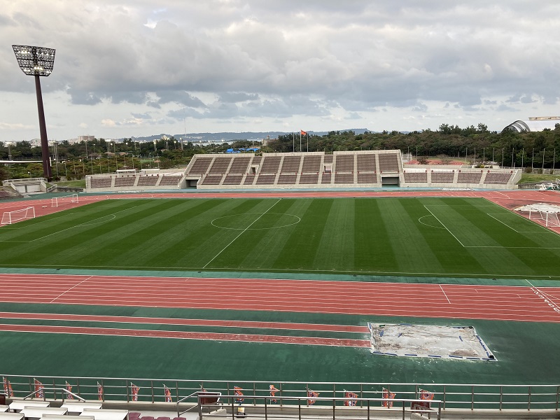 工事名:沖縄県総合運動公園陸上競技場インフィールド芝工事(芝生施工及び養生管理)