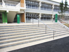 【工事概要】 透水平板舗装(スーパーテラ) 景観用人工芝(t=40mm) 景観土舗装(土路コン) 透水性天然石舗装(リンクストーン) 遊具(ヒネリン・鉄棒・うんてい・滑り台) 常緑キリン草(プラグ苗) エコRGソイル わい性少穂型選抜野芝「ひめの」