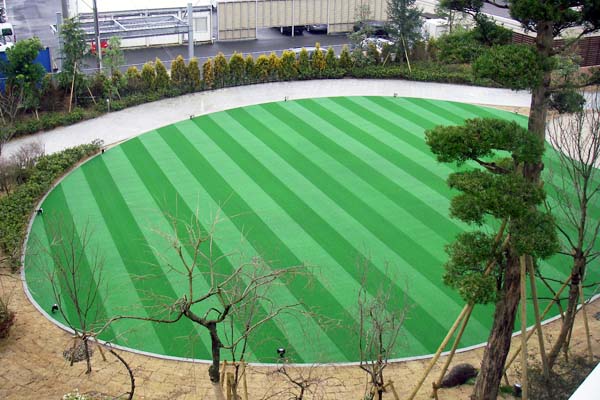 ■内容 人工芝屋外ステージ広場・平板ステージ広場・デザインクリート・散策路・テラス・壁泉設備・割り肌プランター・ギ石縁石 他