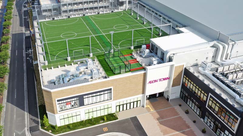 今回の現場は屋上ということで、やはり風が強いんですね。しかも、フットサルコートのすぐ横は屋外の立体駐車場から店内3F入口への通路でもあるんです。
