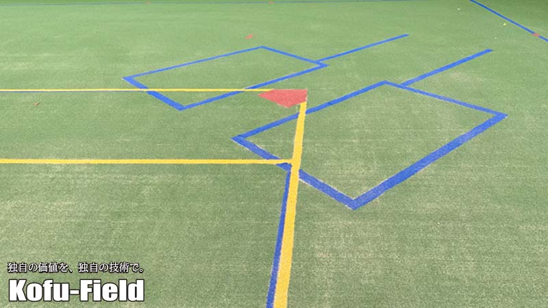 人工芝の特徴としては、子どもたちが滑りにくく、怪我を防ぎます。またボールの転がり性能が高いので、球技にも適しています。今回は珪砂を充填することで人工芝の安定性を増し、耐久性の向上も図っています。