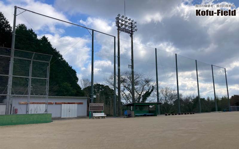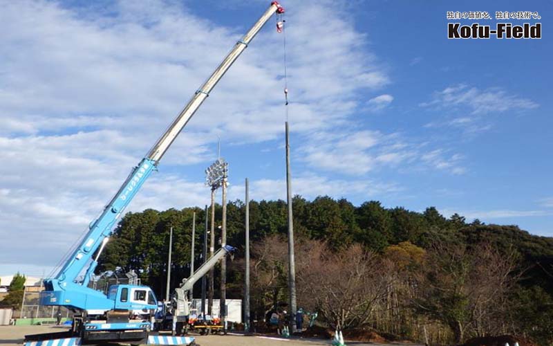 老朽化した支柱と防球ネットを撤去して、新しいハイポール(高さ15m)と防球ネットを設置する工事を担当させて頂きました。