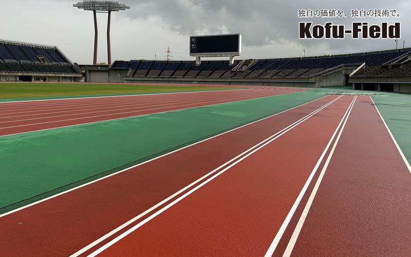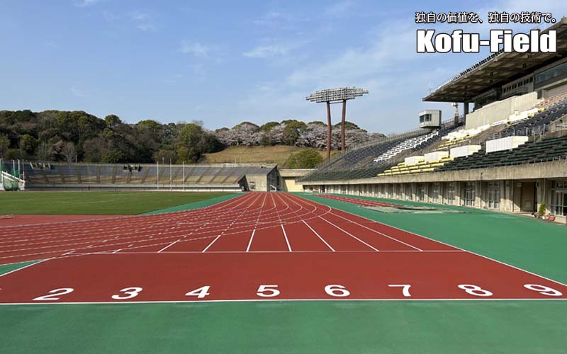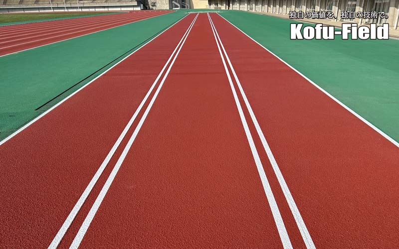 1990年開催の国体のために建設されたスタジアムで、日本陸上競技連盟公認の第一種陸上競技場です。福岡市にあるスポーツ拠点を代表する施設の一つです。今回はトラック(ウレタン走路)を中心とした改修工事を担当させて頂きました。