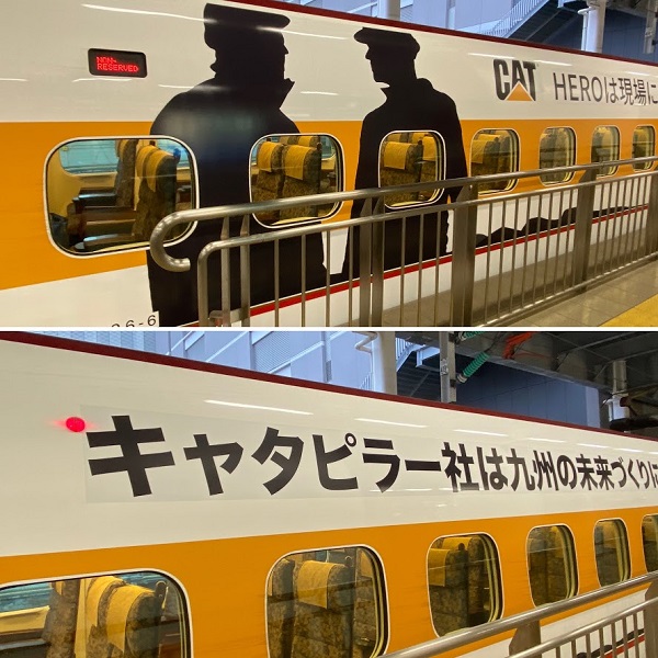 九州新幹線にお目見えのラッピング車両。いつかわが社のロゴでラッピングできることを夢見てますけど、笑。