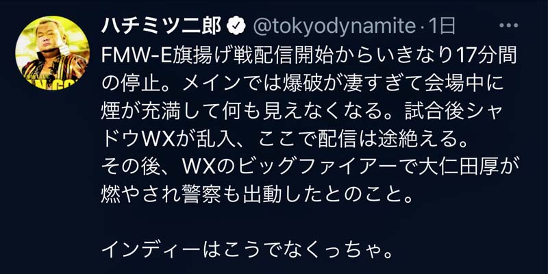 例えば、先日のFMW-E旗揚げ戦でのライブ配信での出来事です。