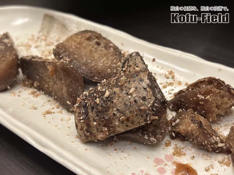 田芋(ターンム)を甘辛く味付けして唐揚げにしたものですが、お正月やお盆などの行事の席でよく食べられるそうです。 外はカリッとしていて、中はもっちりとした食感が最高でしたね。