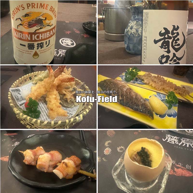 おまけの写真は出張先でのディナー紹介。天ぷらにはビール、魚には日本酒が合いますね!