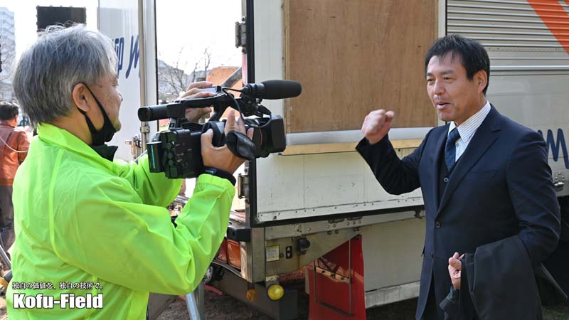 冒頭の写真は選対ミッションからの一枚です。柳川市長へのインタビューシーンですね。