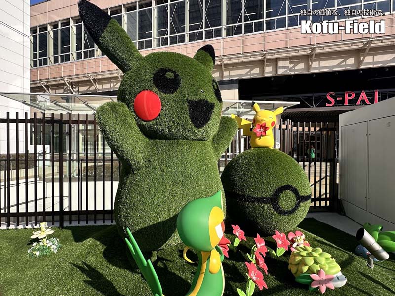 おまけの写真はこんな一枚。仙台駅で目にしたピカチューです。そうそう、こういった人工芝モニュメントも制作できますので、お声がけくださいね。笑
