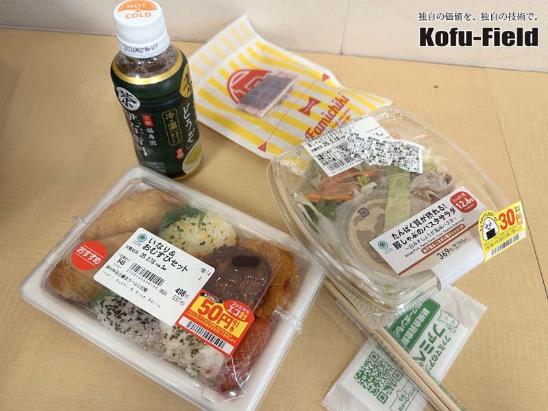 おまけの写真は地元でのランチ紹介。コンビニで文書を印刷しようと思って立ち寄ったら、イートインコーナーもあって、ちょうど昼時でもあったので・・こんな感じのランチとなった次第です。でも、コロッケが余分でしたね。苦笑
