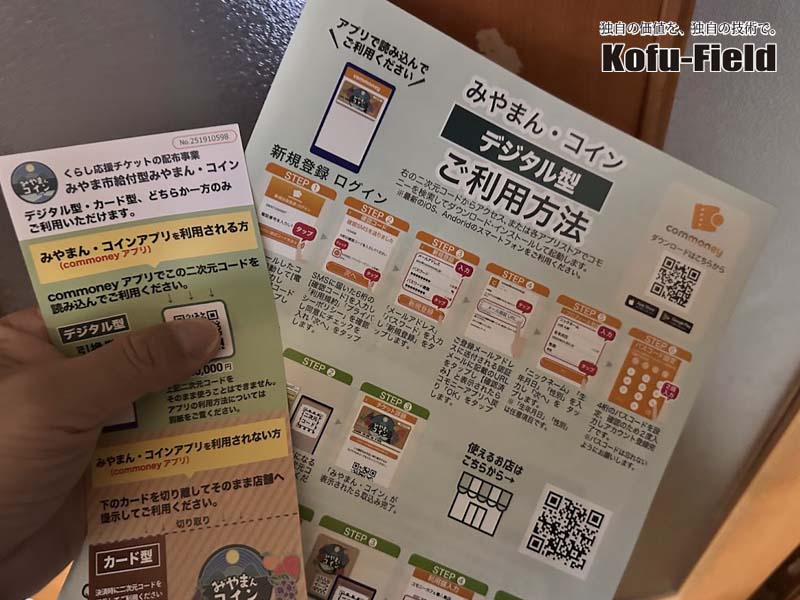 みやま市が採用している電子チケットサービスは「commoney」という仕組みです。