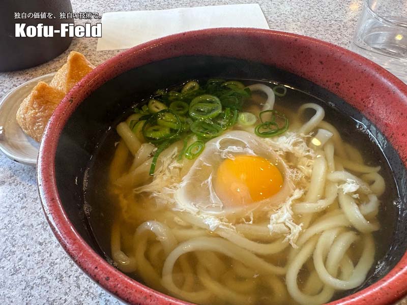 おまけの写真は地元でのランチ紹介。八女インターチェンジ近くのうどん茶房「麺楽」さんですね。この日はシンプルにたまごうどん。安定の旨さですね。笑