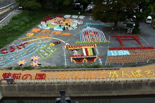 さて、最大の見せ場は、お城周辺に配置された約20,000個の紙とうろうで、文字や絵を描き暗闇のなかに幻想的な世界を体験できる所です。