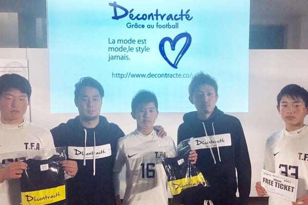 今大会は、フットボールアパレルブランド「Décontracté(デコントラクテ)」様の協賛で行いました。