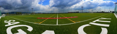 ラインもあらかじめ織り込まれている人工芝で、それぞれサッカー用1面(105m×68m)、ジュニアサッカー用2面(68m×50m)、ラグビー用1面(105m×68m)となっています。
